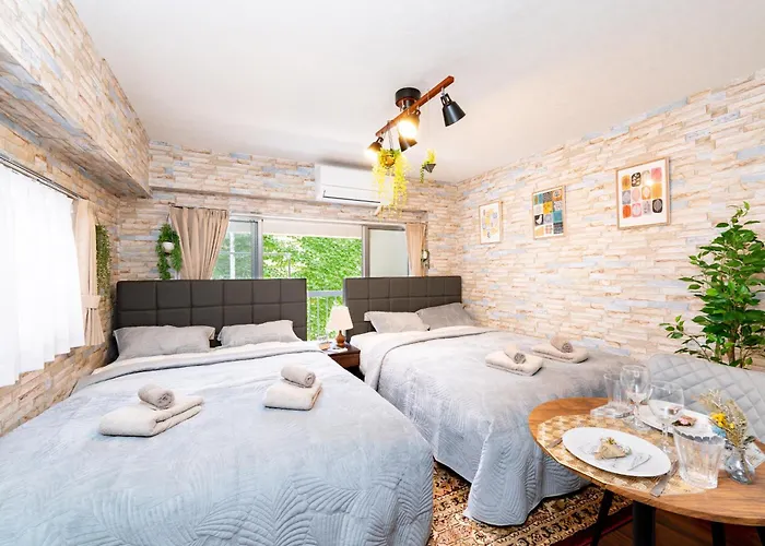 新宿駅徒歩8分!緑あるデザイナーズホテル/最大6名/Fire Tv/光ネット/伊勢丹・歌舞伎町すぐ!坐落在東京都中心,距离東京约1.2公里。 住所设有1间卧室和1间浴室。